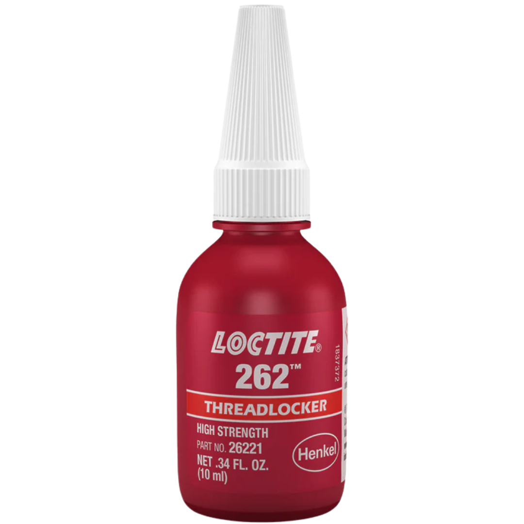 LOCTITE® 262 es un fijador de roscas en base metacrilato, de color rojo, uso general, de resistencia media a alta, tixotrópico. Tiempo de fjiación en acero 15 min, en latón 8 min y en acero inoxidable 180 min. Fluorescencia: positivo bajo luz UV. Ideal para aplicaciones en las que hay que evitar la migración del adhesivo tras su aplicación sobre el sustrato. Puede tolerar ligeras contaminaciones de aceites industriales. Adecuado para todo tipo de conexiones roscadas de metal.