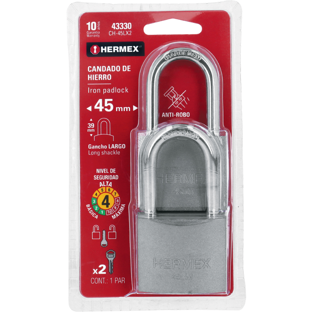 1170-Blíster Con 2 Candados De Hierro De 45Mm Con Gancho Largo 43330 Truper