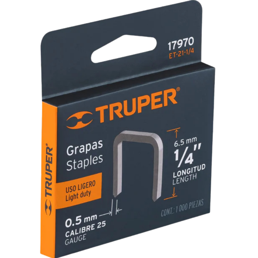 Caja Con 1000 Grapas 1/4' Corona 11.3 Mm Para Et-21, Truper Catalogo