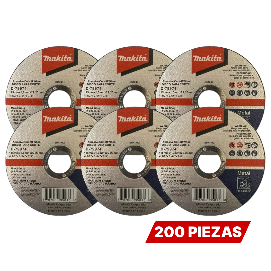 Caja Con 200 Pzs - Disco Abrasivo Para Corte De Acero 4-1/2 x 7/8 x 1,0 mm B79974 Makita $5.77 C/U