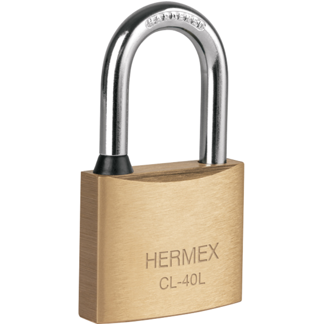 1185-Candado De Latón 40 Mm Gancho Largo En Blíster Hermex 43437 Truper
