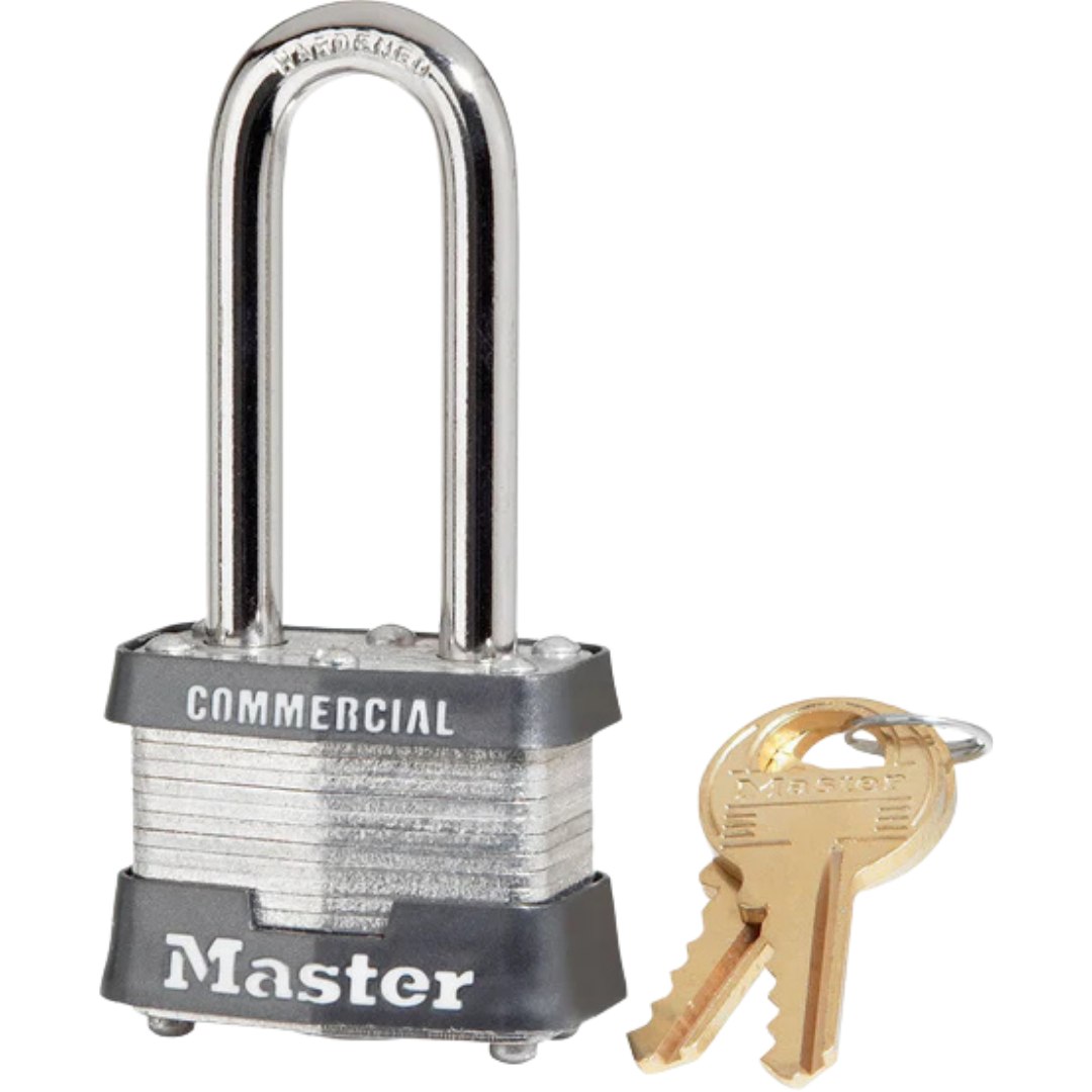 El candado de acero laminado n.º 3LH de Master Lock cuenta con un cuerpo de acero laminado reforzado de 1-9/16" (40 mm) de ancho para una resistencia adicional y un arco de 2" (51 mm) de alto y 9/32" (7 mm) de diámetro para una resistencia excelente al corte.