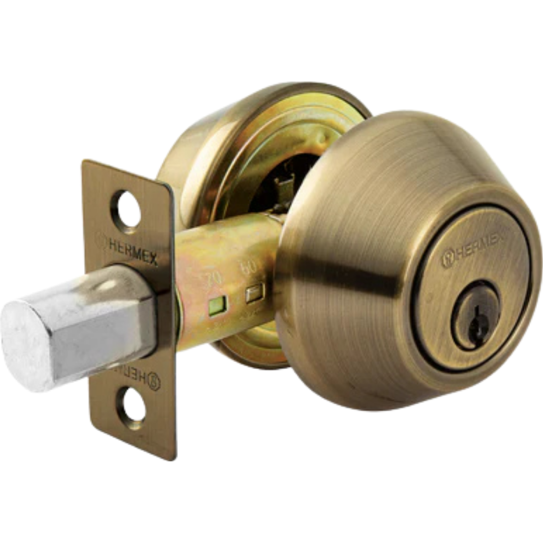 Cerrojo latón antiguo doble cilindro Hermex Basic Catalogo*LOCK14CE*