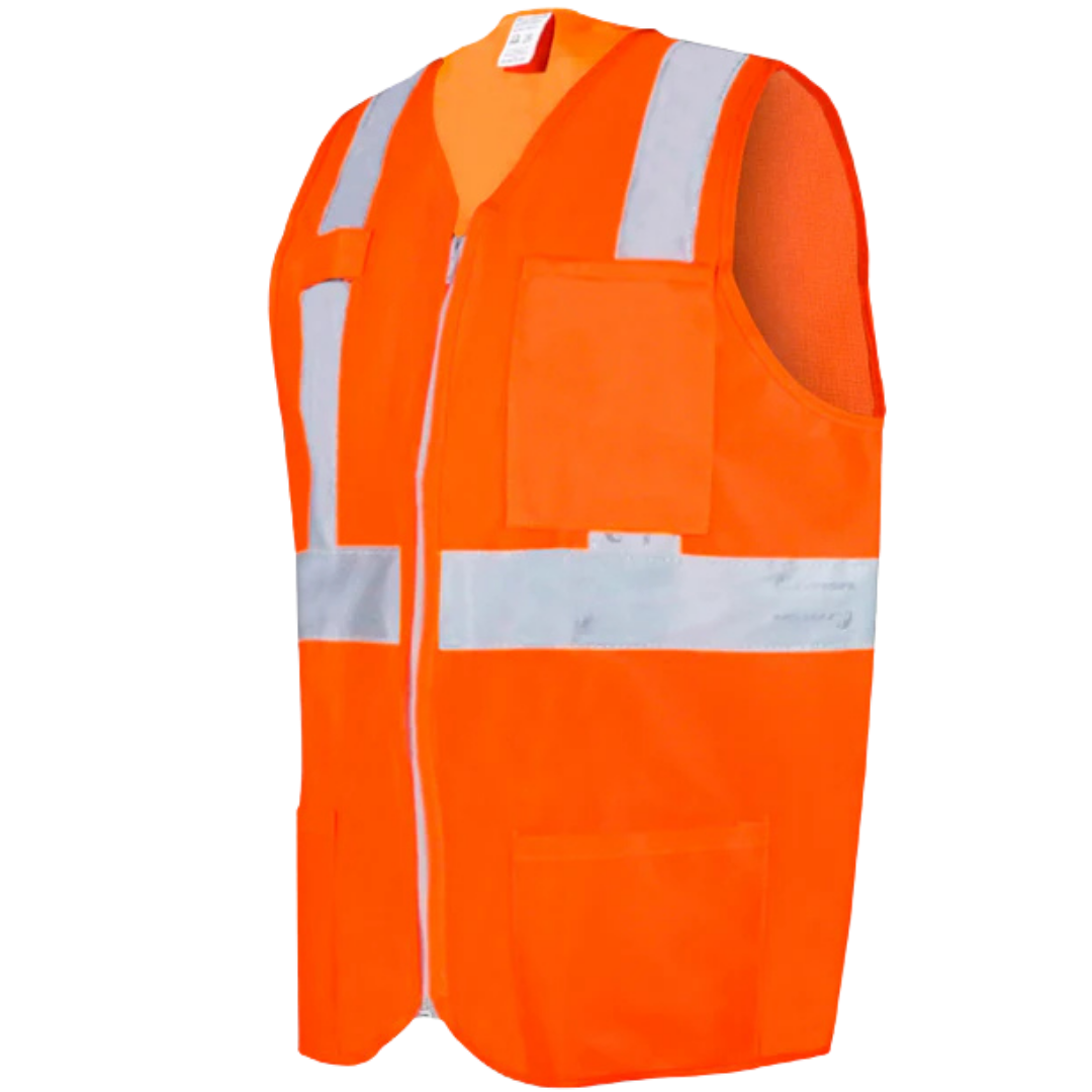 5648-Chaleco Anaranjado Alta Visibilidad Con Reflejante Gris De 2 Pulgadas Talla Mediana ECO-1020ANCRMD Jyrsa