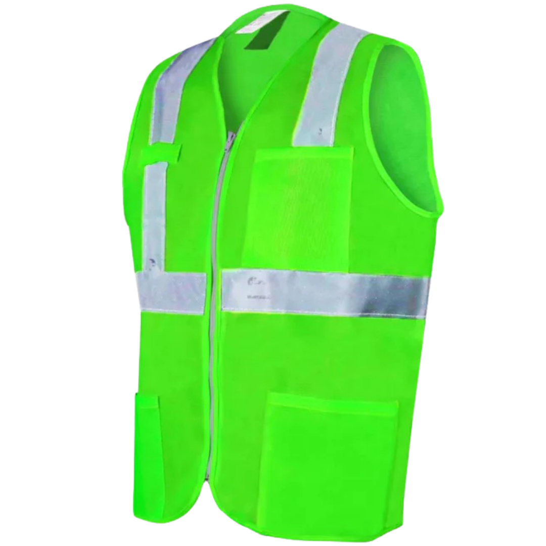 Chaleco Verde Alta Visibilidad con Reflejante Gris de 2 Pulgadas Talla Mediana. Jyrsa Catalogo