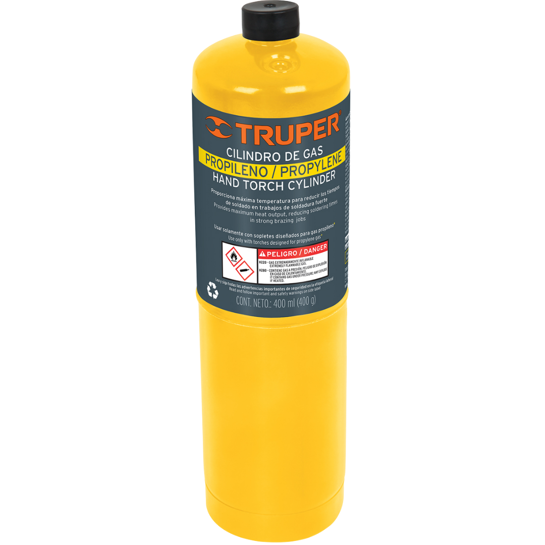 Cilindro de gas propileno de 400g, amarillo, Truper