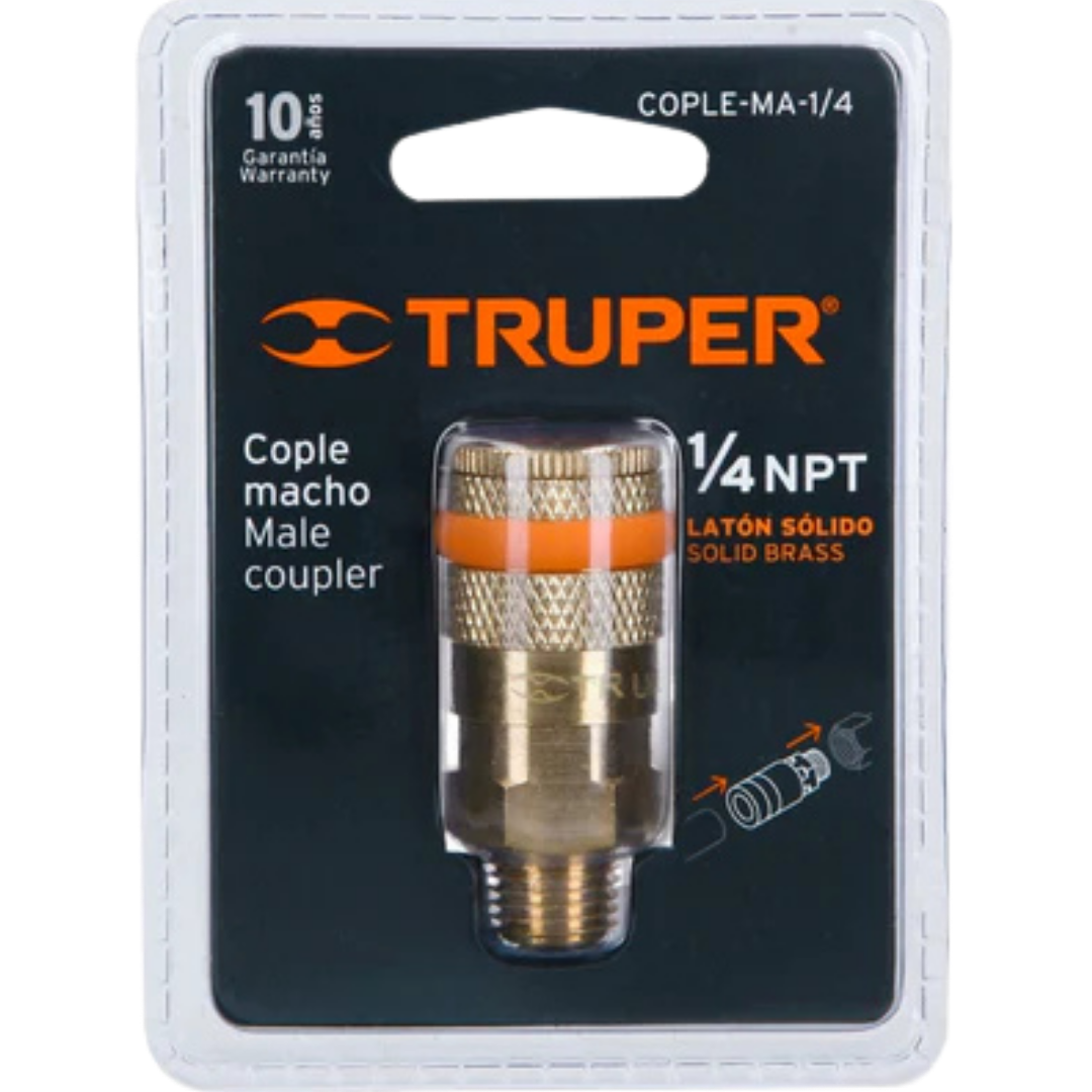 Cople de latón cuerda 1/4 NPT macho Truper 19085