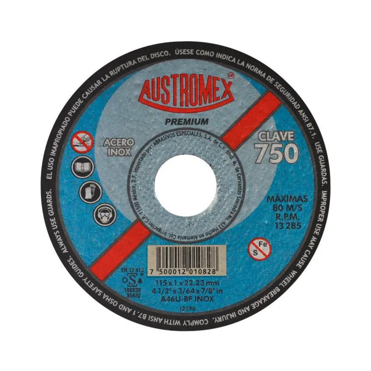 2032-Disco Abrasivo Para Corte De Acero Inoxidable De 115 X 1.0 X 22.23 Mm 750 Austromex