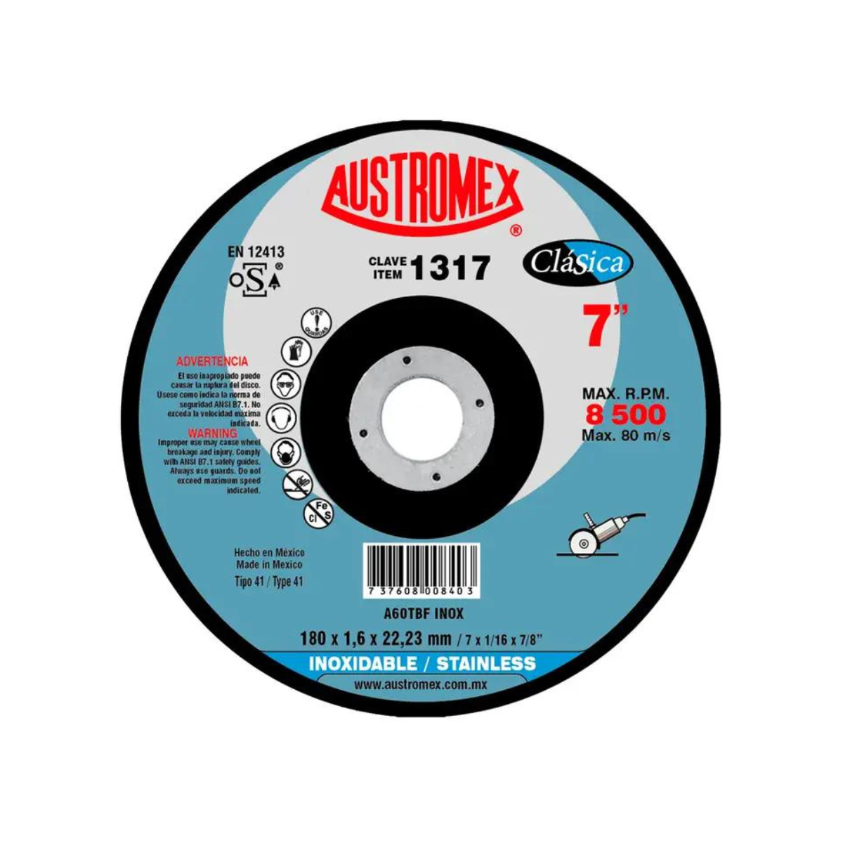 2046-Disco De Corte De Acero Inoxidable 180 X 1.6 X 22.23 Mm 1317 Austromex