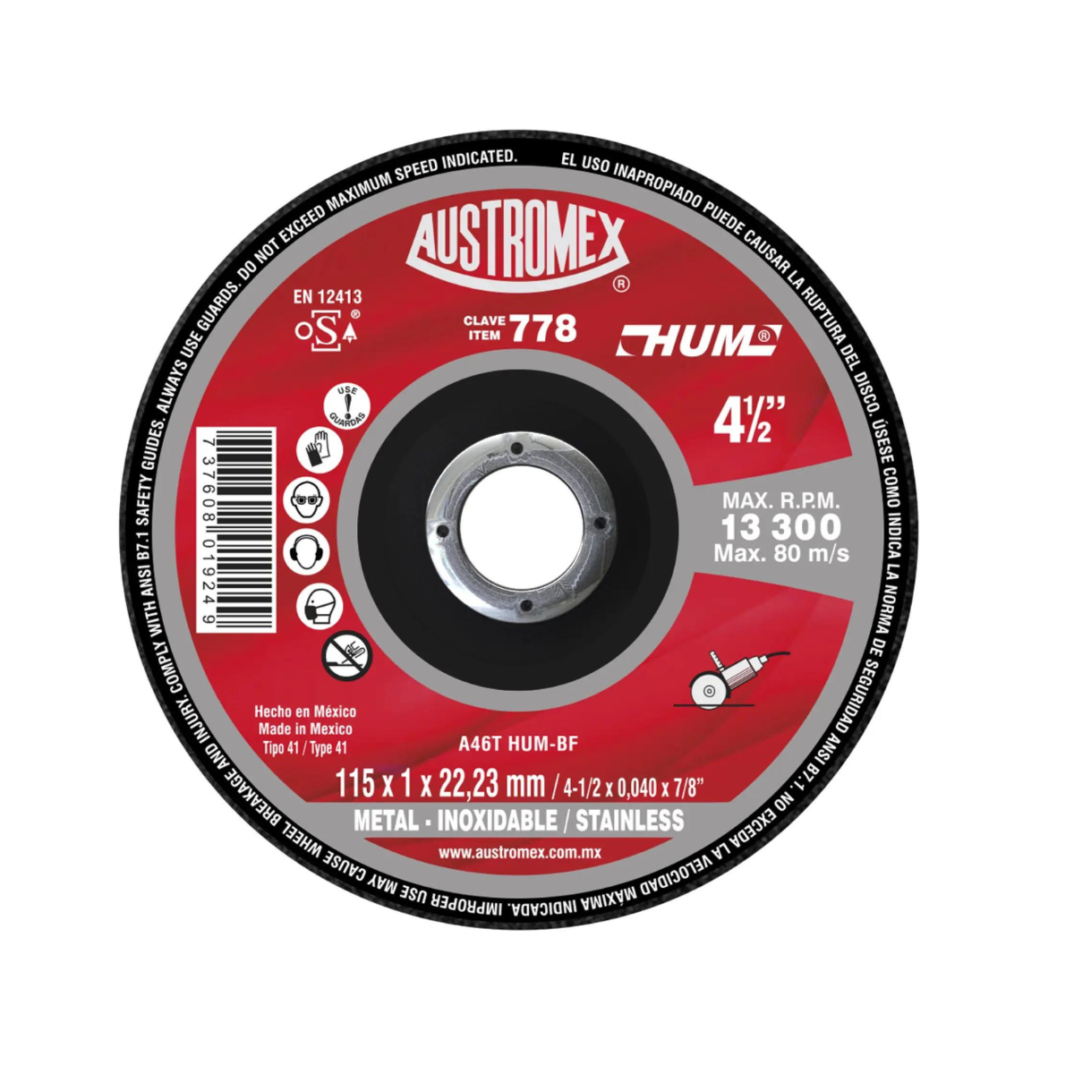 2034-Disco Abrasivo De 115 X 1 X 22.23 Mm Para Corte De Acero Al Carbón Acero Inoxidable Y Metales 778 Austromex