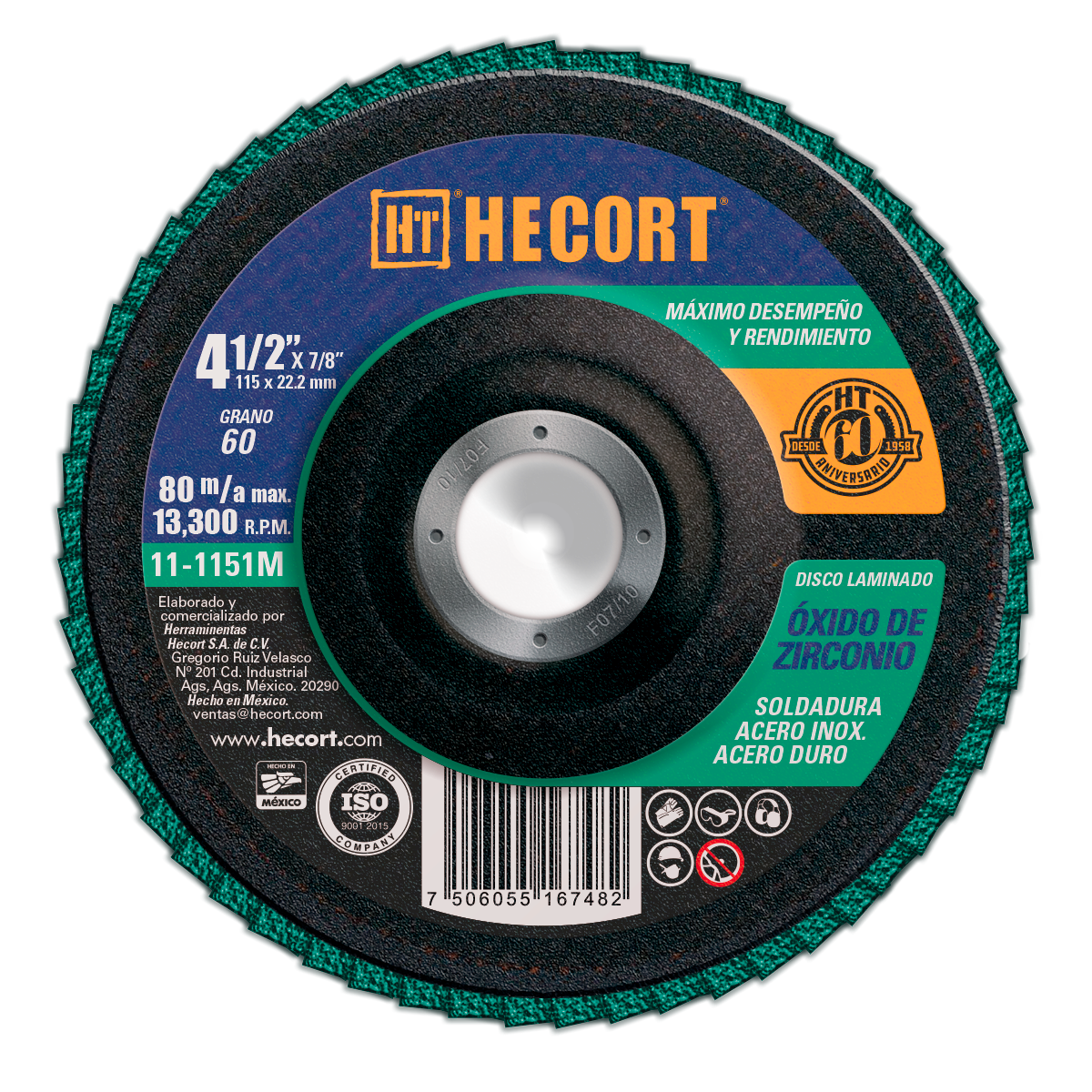 2089-Disco Laminado 100 % Zirconio 4 1/2 X 7/8 T-29 G-60 111151M Hecort