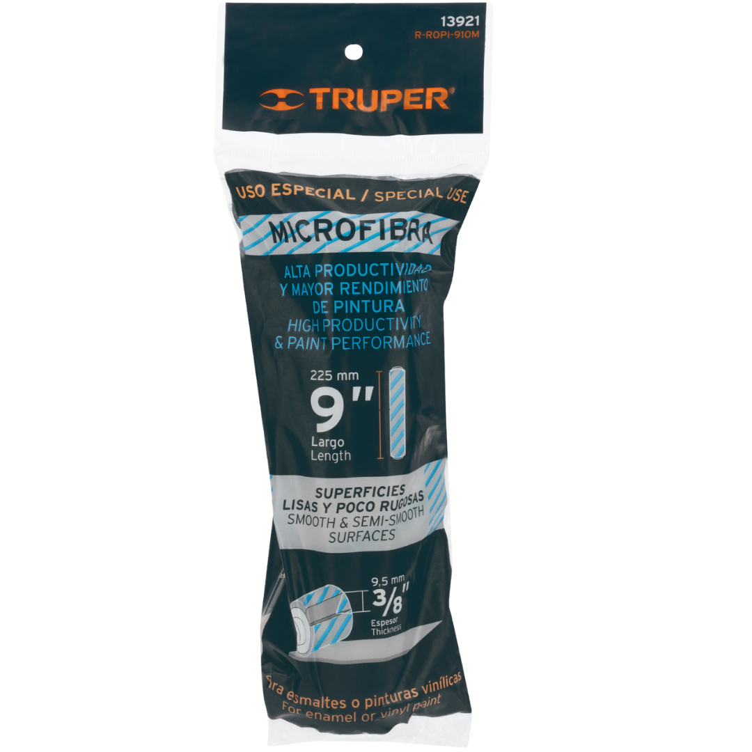 4456-Felpa P/Rodillo Microfibra 9X3/8' Superficies Poco Rugosas 13921 Truper