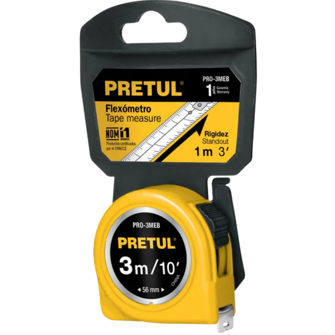 Flexómetro Amarillo 3 m, Cinta 13 mm, En Tarjeta, Pretul Catalogo