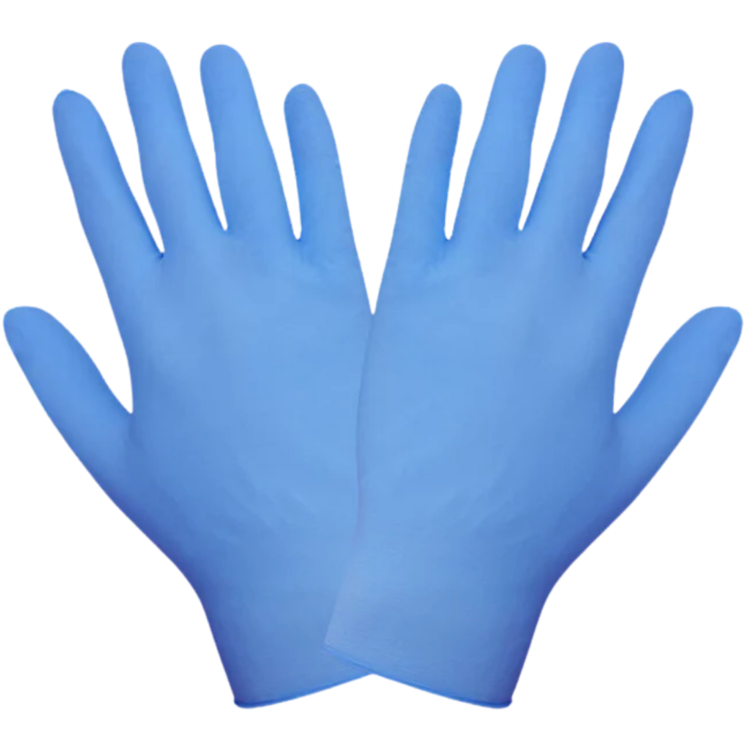 Guante de nitrilo desechable de 3.5 mils color azul con textura en puntas de los dedos. 9.5” de largo. Ambidiestro. Libre de talco y silicón.
