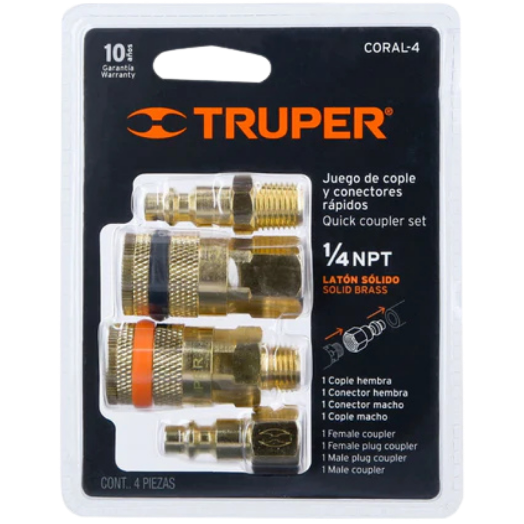 Juego De 4 Piezas, Coples Y Conectores Rápidos De Latón Truper Catalogo