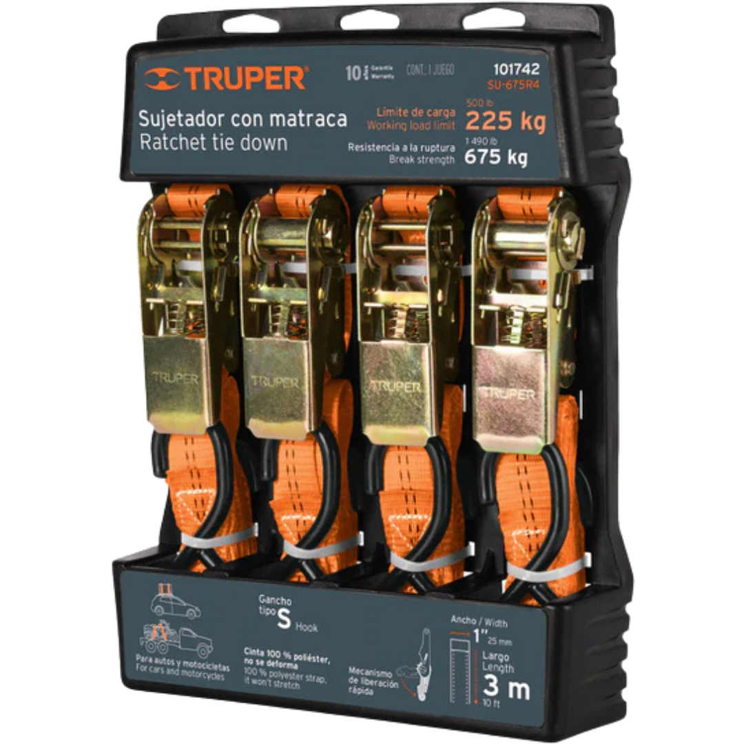 4954-Juego De 4 Sujetadores Con Matraca Carga Máxima 675 Kg 101742 Truper