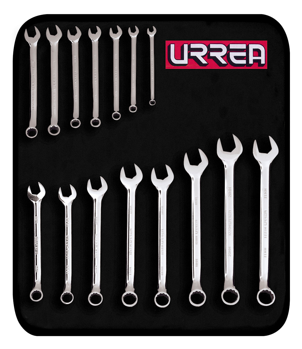 Juego de Llaves Combinadas Pulido Espejo Métricas 12 Puntas 15 Piezas Urrea Catalogo