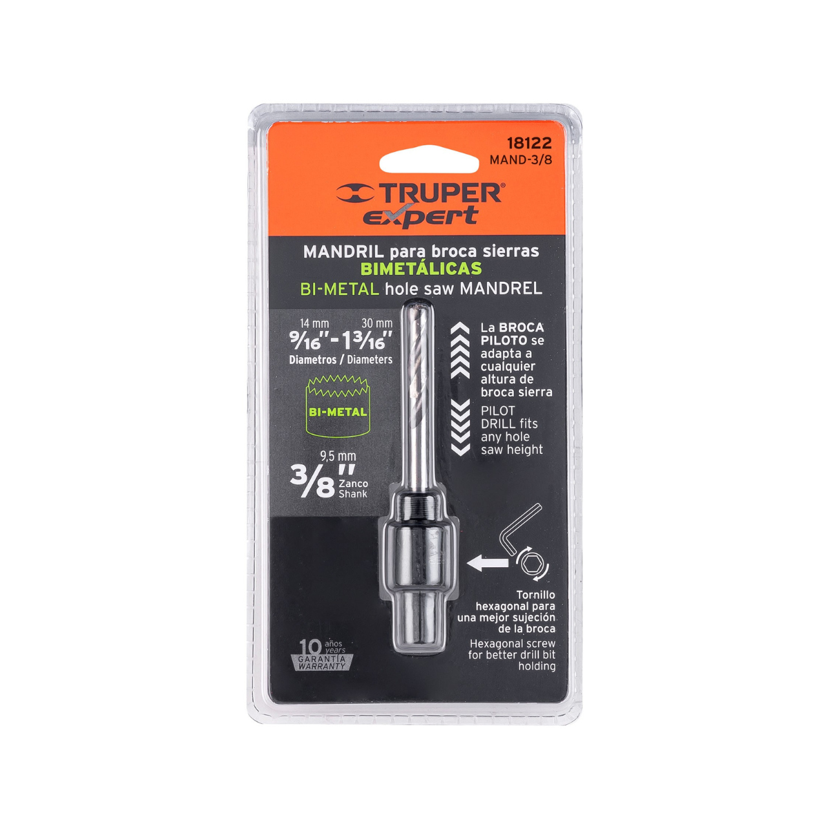 2497-Mandril Zanco 3/8' Para Brocasierras Bimetálicas 18122 Truper