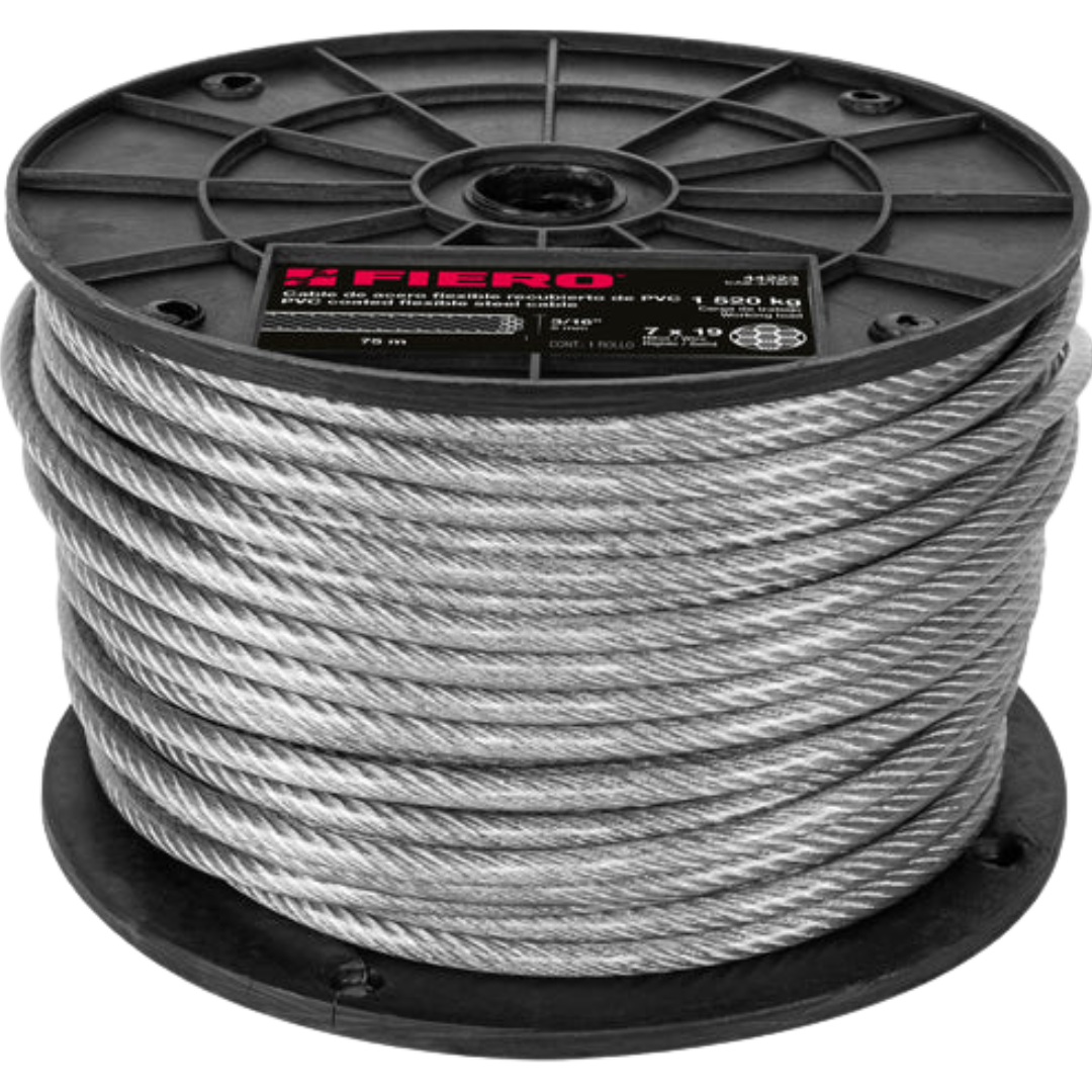 1071-Metro Cable Flexible 3/16' Acero 7X19 Recubierto Pvc 75 M 44223 Truper