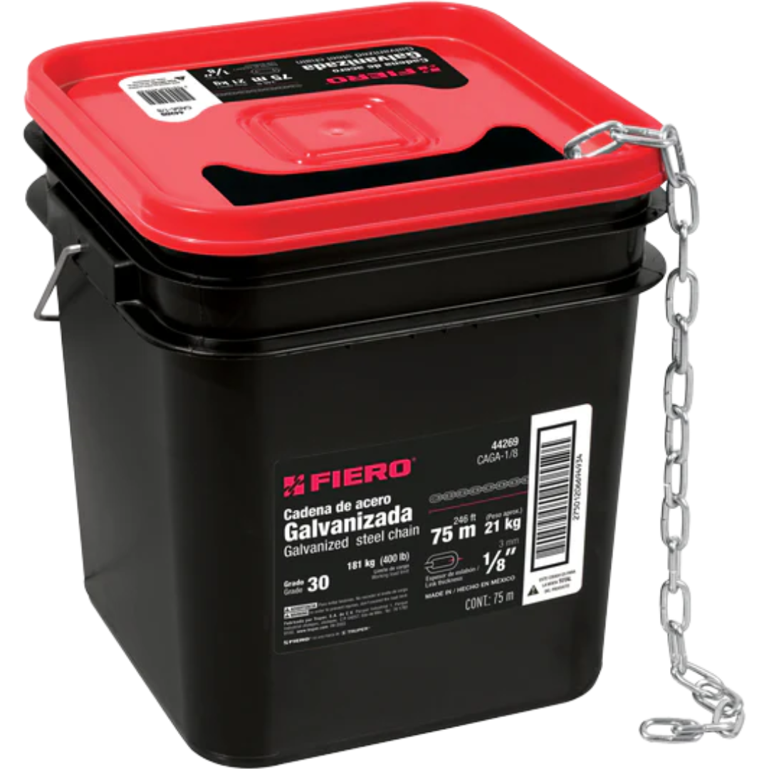 1097-Metro De Cadena Galvanizada De 1/8' 75 M (21 Kg) En Cubeta Fiero 44269 Truper