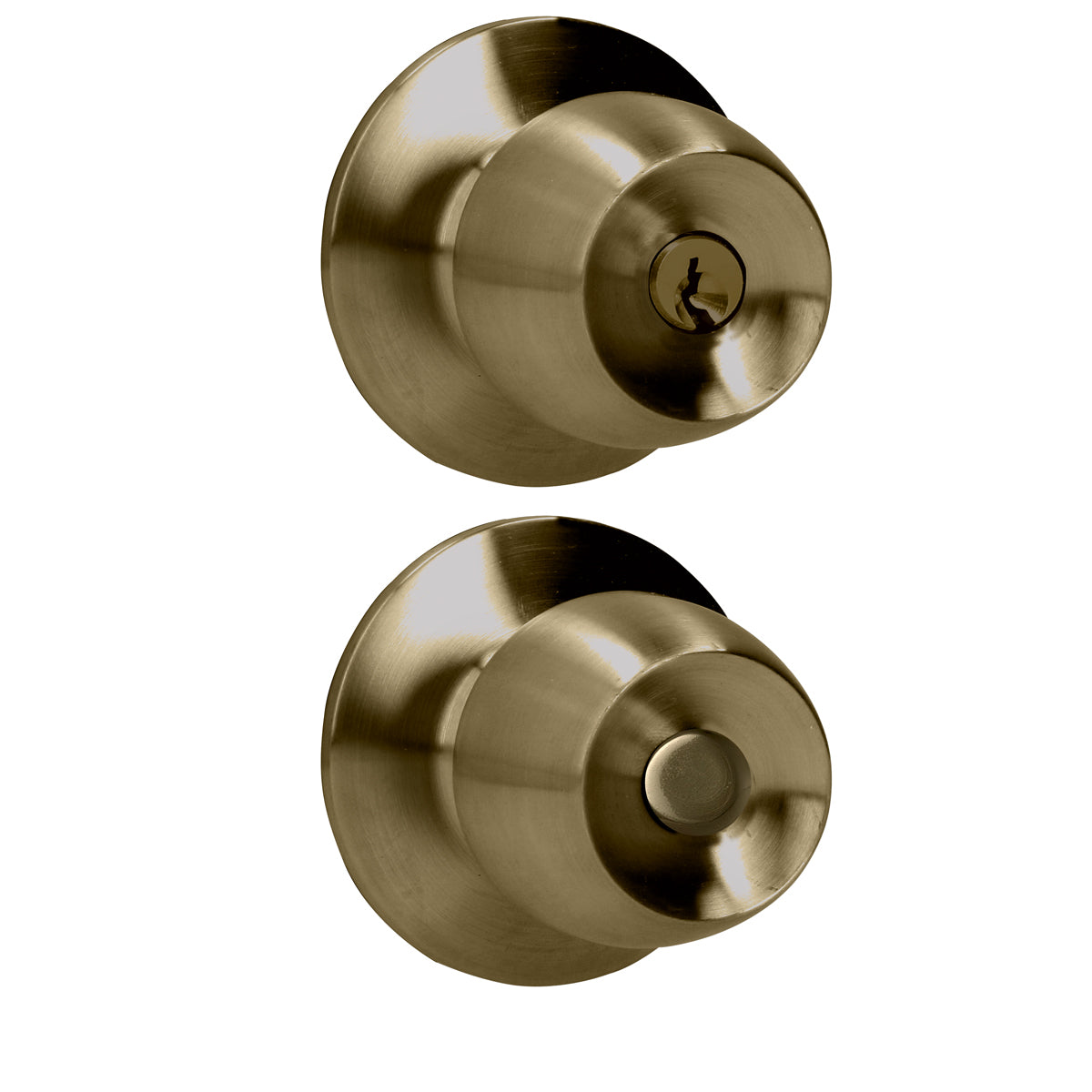 Pomo Cilíndrico Media Copa Función Entrada, Latón Antiguo, Llave Estándar, Blíster Prolok DS
