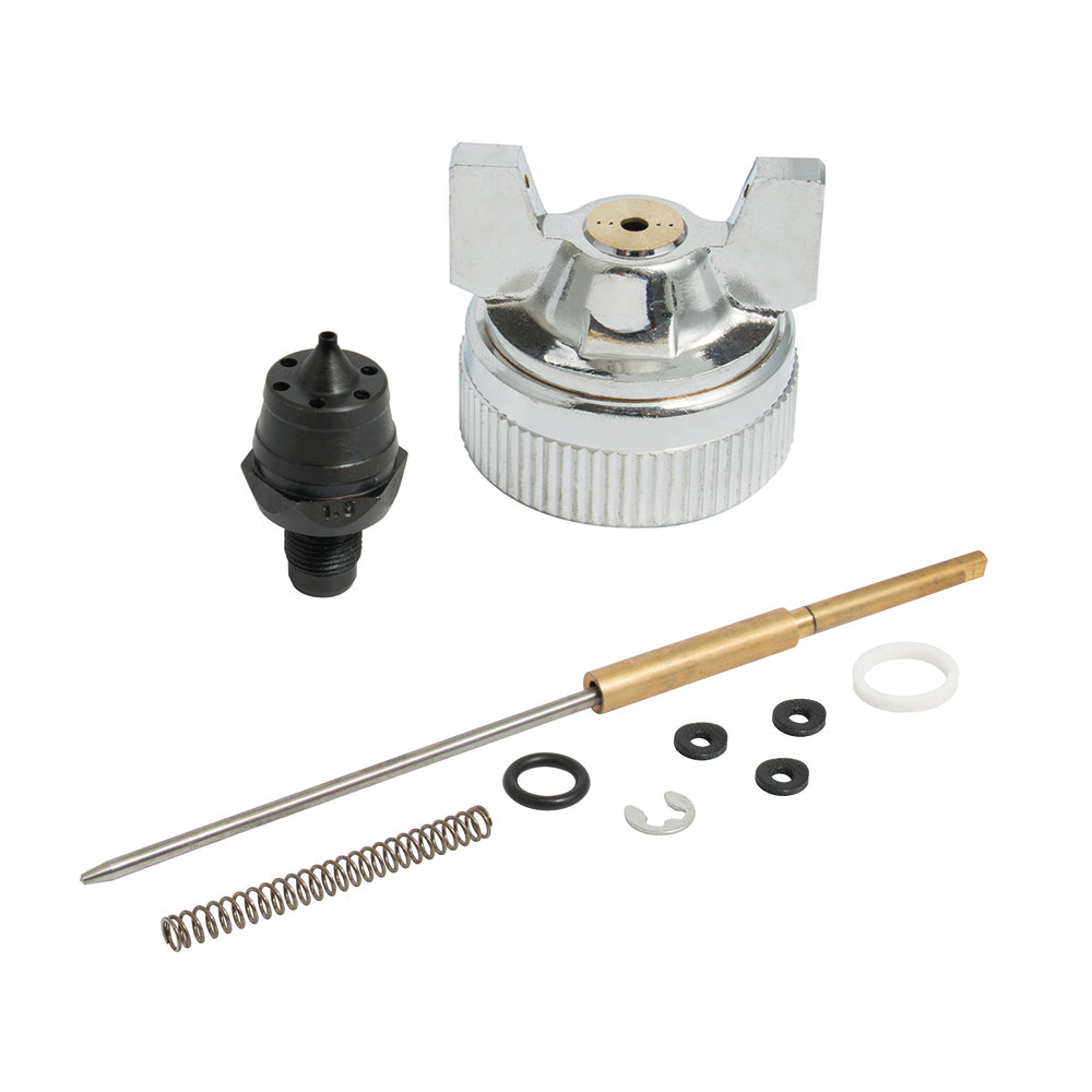 -incluye 1 boquilla tipo abanico, 1 aguja, 1 resorte, 1 boquilla punto, 1 junta y 4 arandelas.