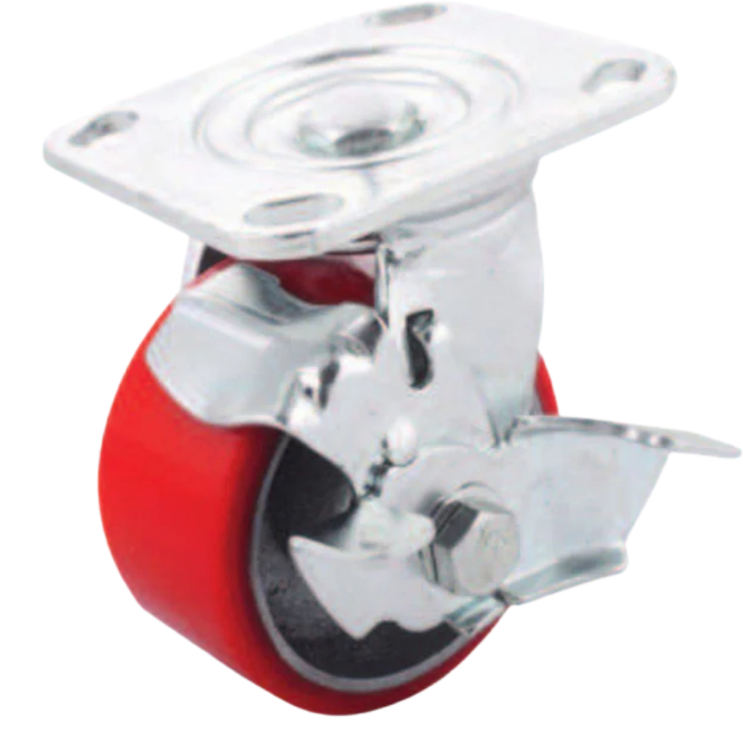 5483-Rodaja Fierro Vaciado Con Poliuretano Giratoria Roja Con Freno 4 X 2" Y-1044-102 Weston