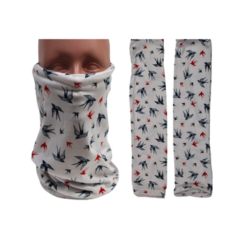 Set 1 bandana y 2 mangas estampados de aves Catalogo